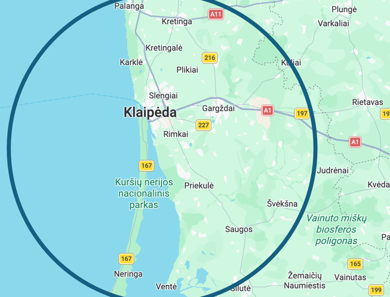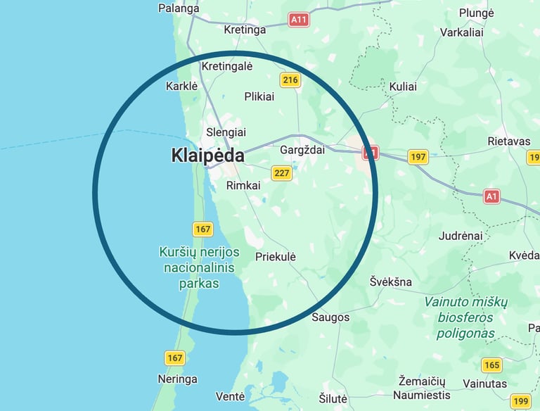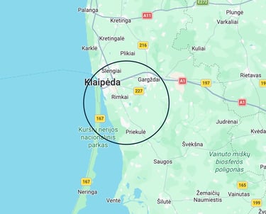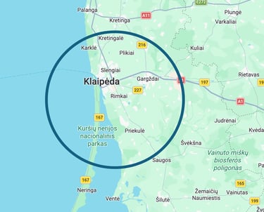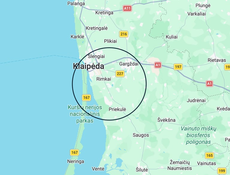 Klaipėda, Kalotė, Dituva, Priekulė, Gargždai, Slengiai, Ginduliai